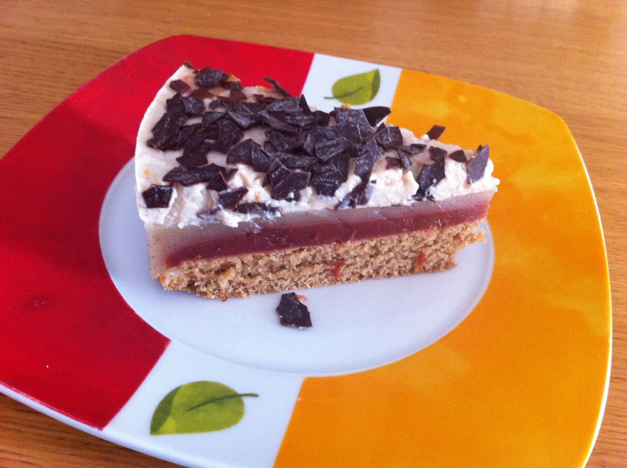 Die Pflaumen mit dem Saft, Gewürzen und Agar Agar pürrieren. Anschließend aufkochen und unter gelegentlichem Rühren abkühlen lassen. Wenn es nicht mehr dampft gleichmäßig auf den Biskuit geben und kühl stellen.
